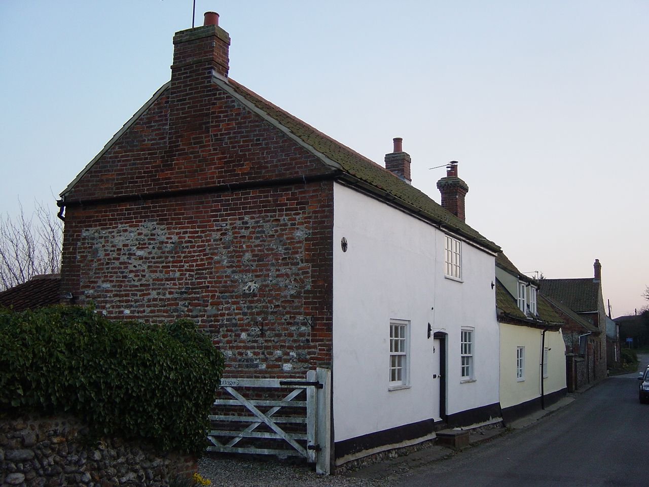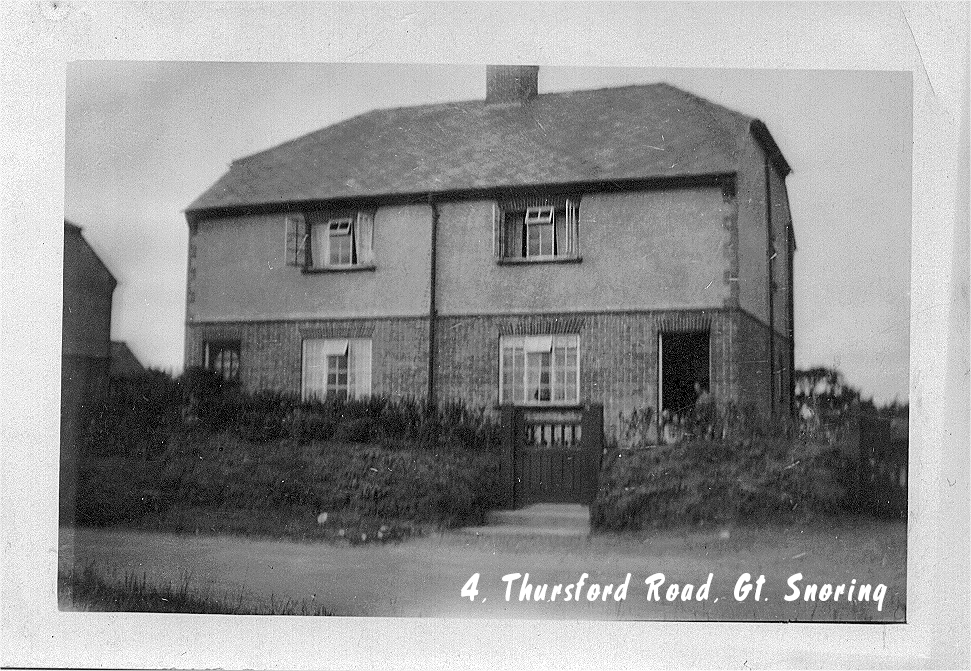 Her parents had a tiny two-up, two-down cottage which still exists (much extended) today. The family then moved to a "new" Council House on Thursford Road, one of the range of progressive modern housing built during and after the First World War for those in need. (See the Thursford Road house alongside). The house had all modern amenities including an iron range with a hotplate for the kettle, coal fires, a wash house in the yard, and water from a tap (cold of course).